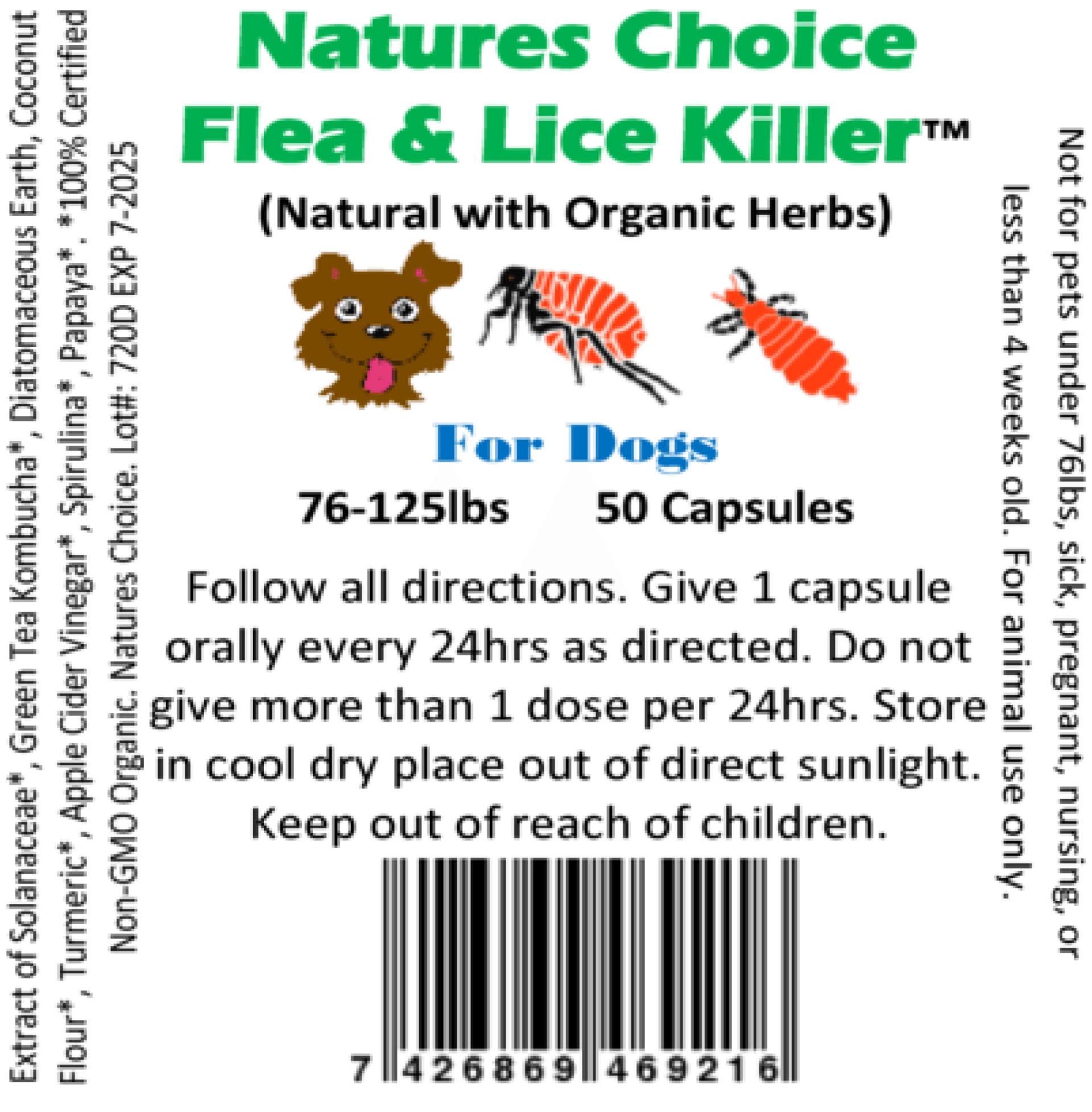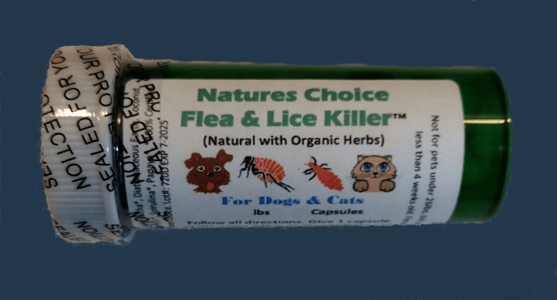 This is an All-Natural, Organic, No-Chemicals, Herbal Supplement that kills fleas and lice on your pet within 1 hour of taking it and as we roll this out through various retailers and wholesalers you should see it shortly in your favorite online store.