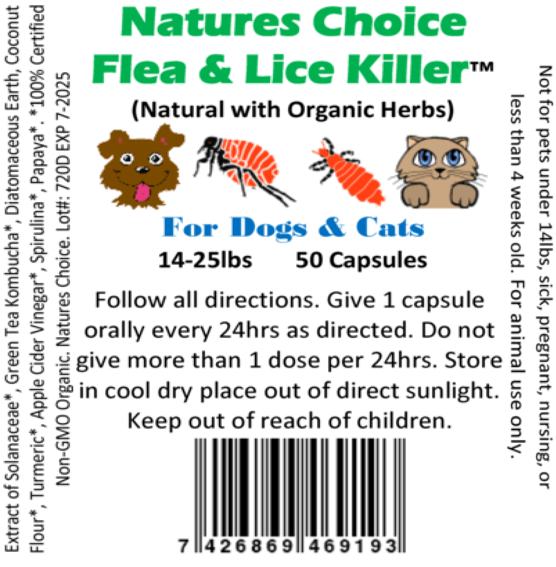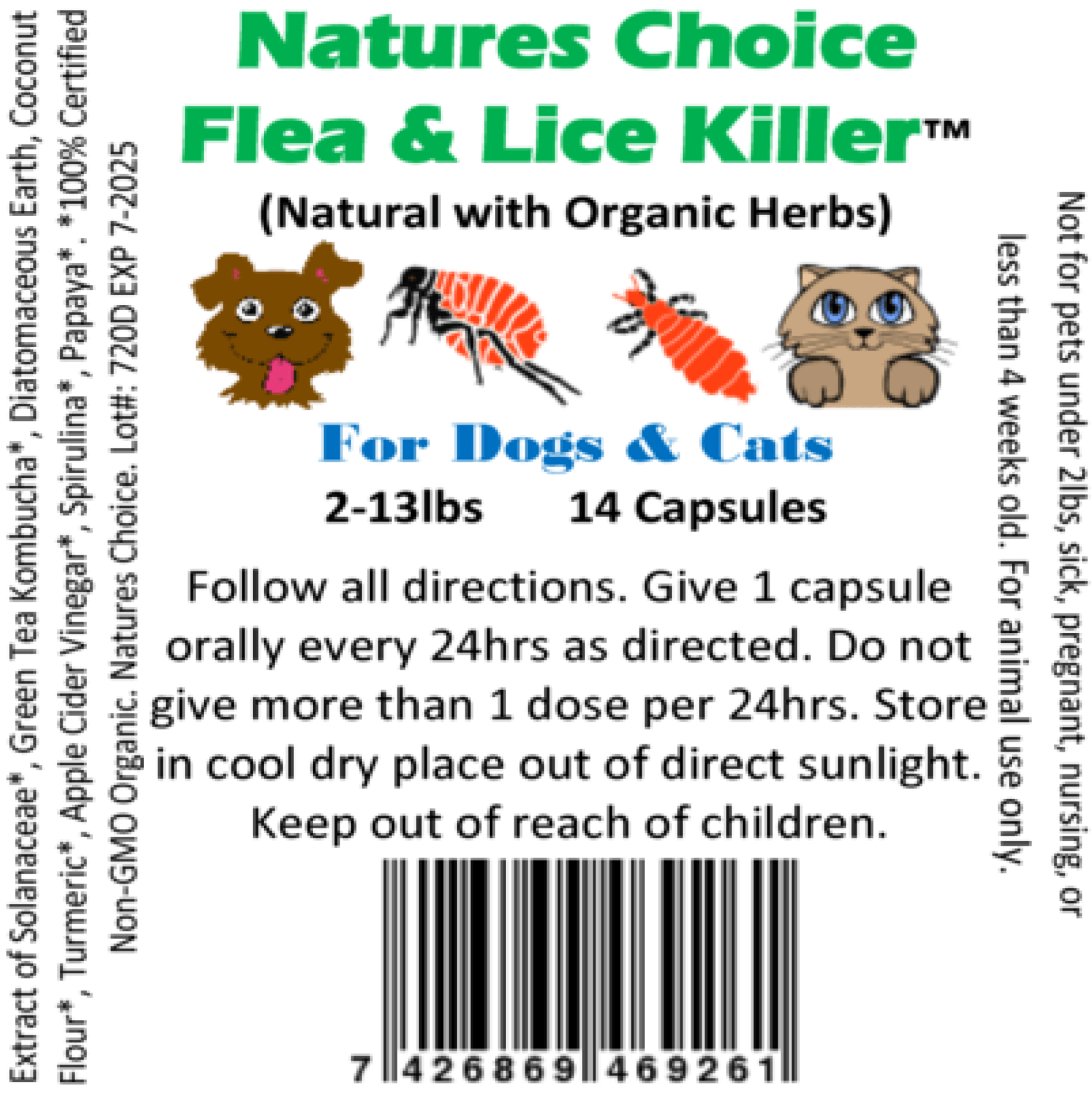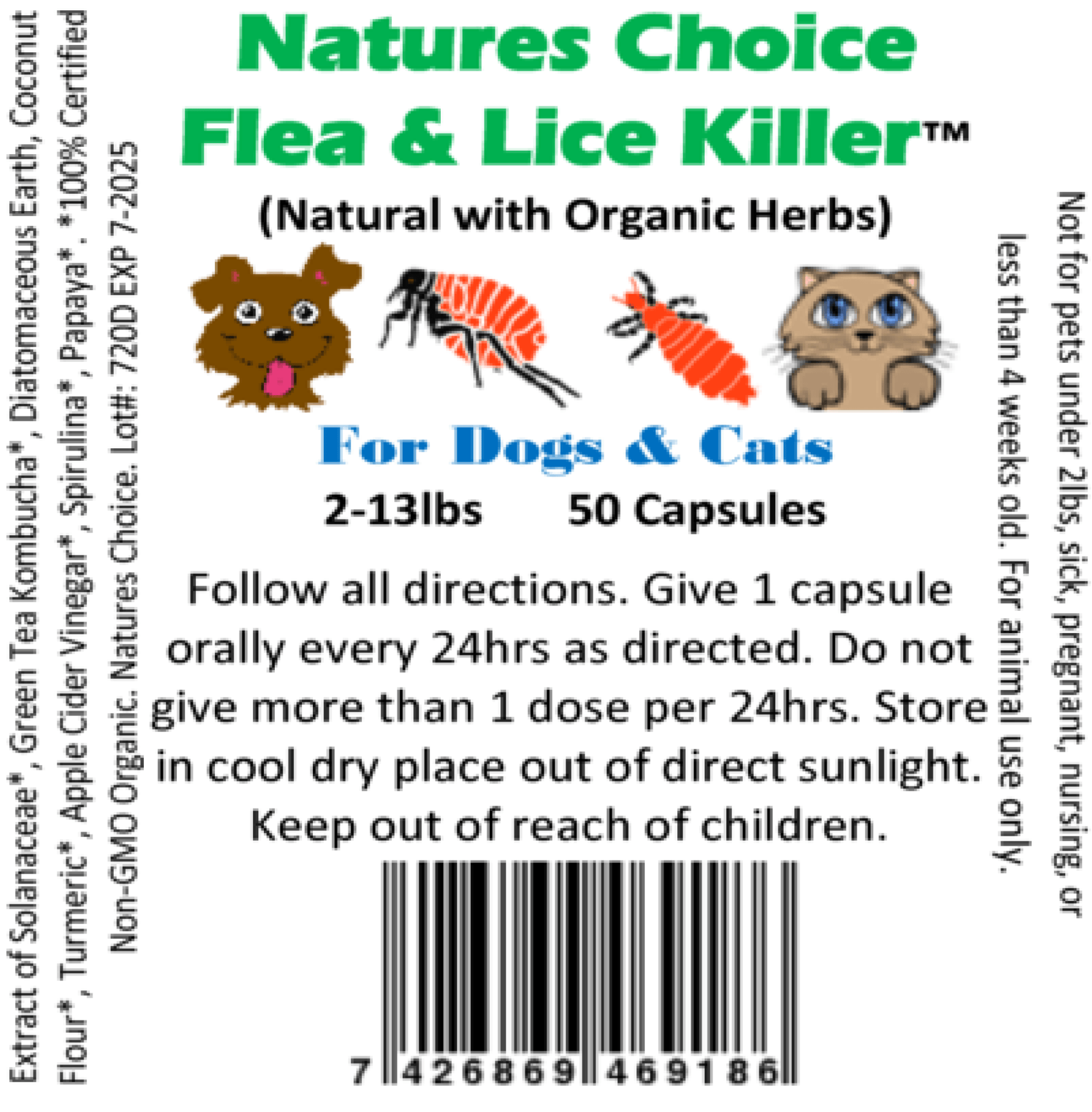 Natures Choice™ is our newest product that we are proud to announce is specifically designed to give your pet the best flea and lice protection through a non-chemical formula that utilizes both Natural and Organic ingredients. Natures Choice™ has no man-made chemicals, is easy for your pet to digest, works fast and through our collaboration with another group we have received approval (Pc Code 072605) so you can rest easy that it only contains pet friendly ingredients.