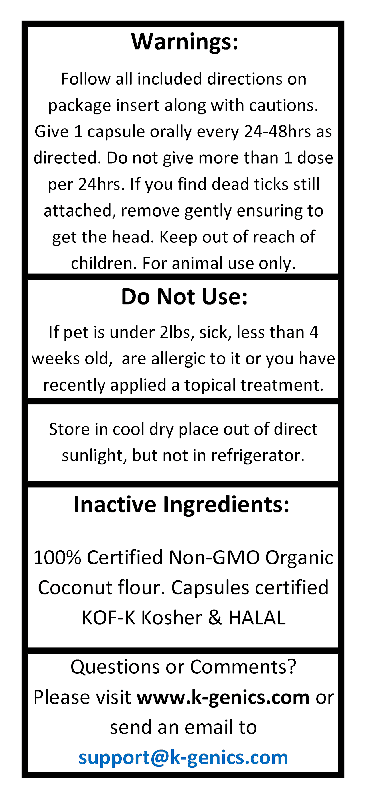 - The label provides the buyer with enough information to make a purchase decision by looking at the photos only and gives the proper dosage directions, but every bottle must be sold with the accompanied Directions and Warnings insert,