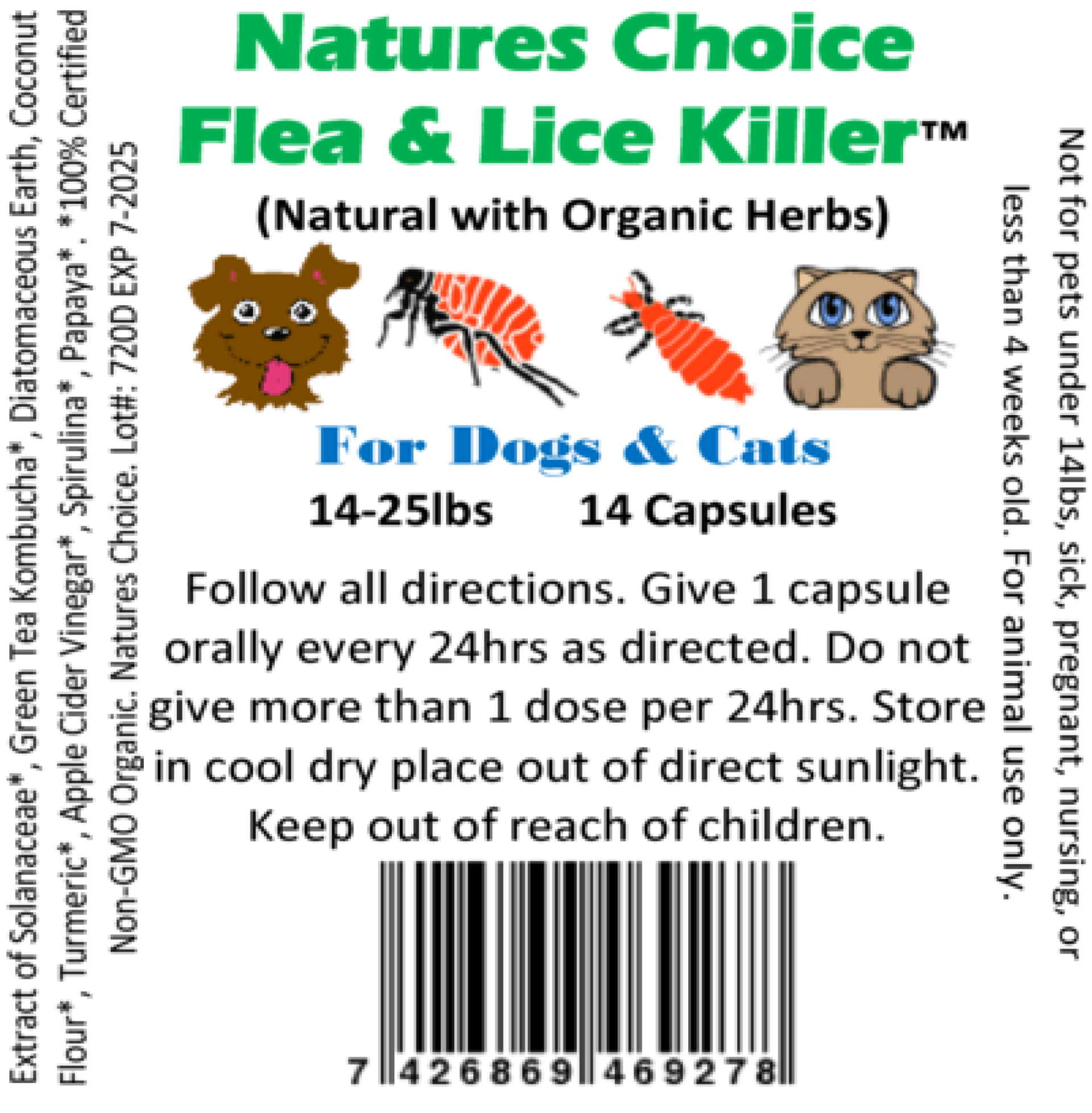 Natures Choice™ is our newest product that we are proud to announce is specifically designed to give your pet the best flea and lice protection through a non-chemical formula that utilizes both Natural and Organic ingredients. Natures Choice™ has no man-made chemicals, is easy for your pet to digest, works fast and through our collaboration with another group we have received approval (Pc Code 072605) so you can rest easy that it only contains pet friendly ingredients.